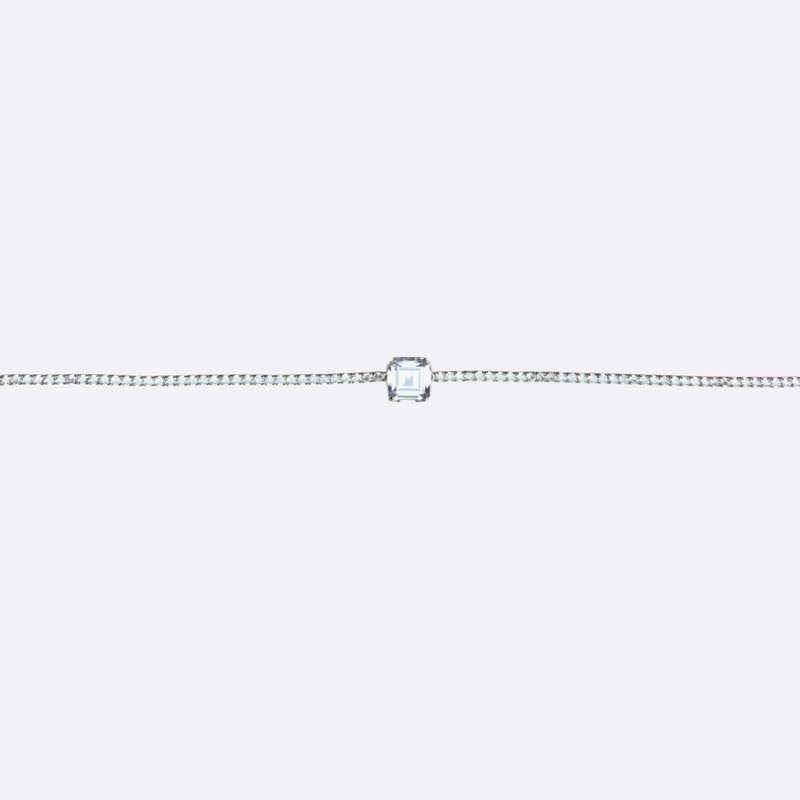سوار تنس أنيق مرصع بالكامل بأحجار زركون لامعة، يتميز بحجر مركزي كبير مقطوع بشكل مربع، مثالي للإطلالات الفخمة والمناسبات الخاصة.فضة عيار 925