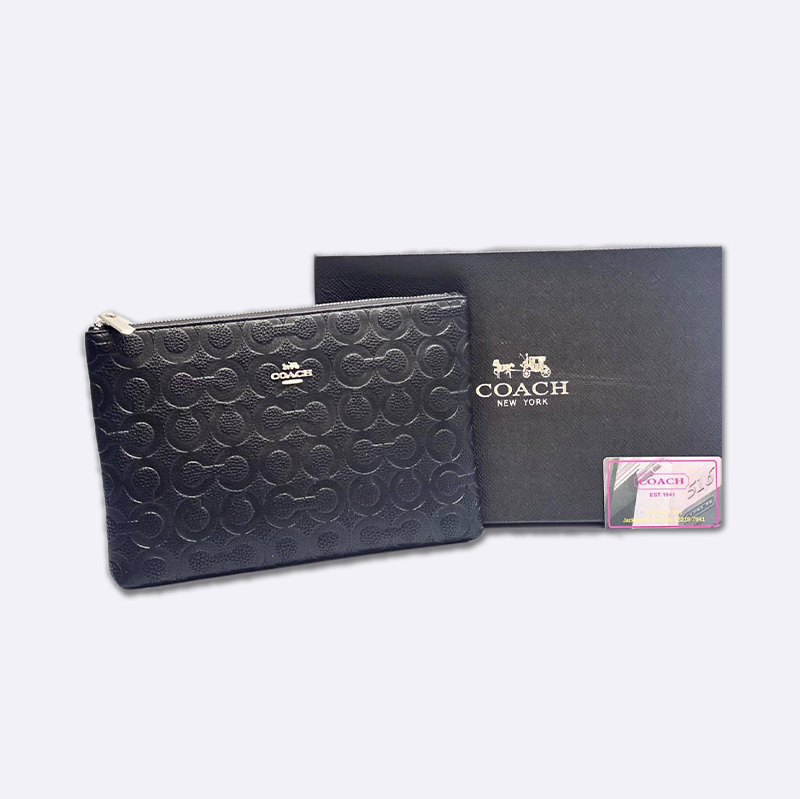 حقيبة كلاتش فاخرة من كوتش مصنوعة من الجلد الطبيعي بنقشة العلامة المميزة. تصميم بسيط وأنيق، مناسبة للاستخدام اليومي والمناسبات، وتأتي مع علبة كوتش الأصلية.
