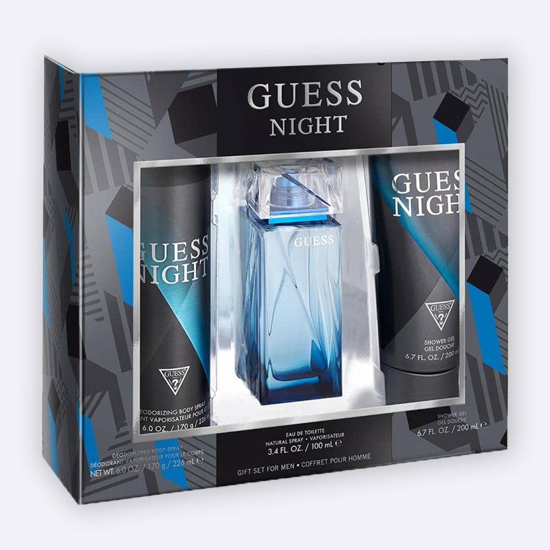 طقم رجالي منعش يجمع بين عطر Guess Night الجذاب، مع بخاخ الجسم وجل الاستحمام لمنحك رائحة شبابية قوية تدوم طوال اليوم.