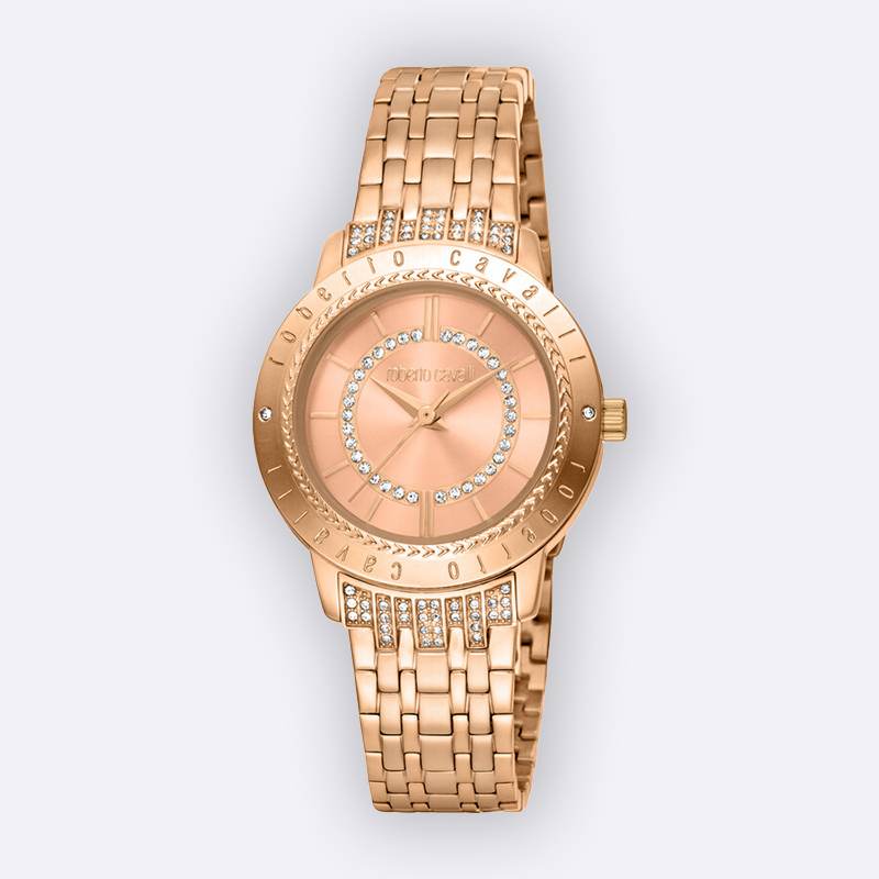 ساعة نسائية أنيقة من علامة Just Cavalli الإيطالية، بتصميم فاخر يبرز الذوق الراقي والأنوثة، مناسبة للمناسبات الخاصة والاستخدام اليومي. مزودة بحركة يابانية دقيقة وتتمتع بجودة تصنيع عالية تعكس هوية العلامة.