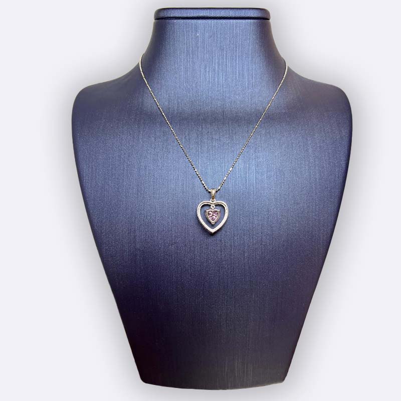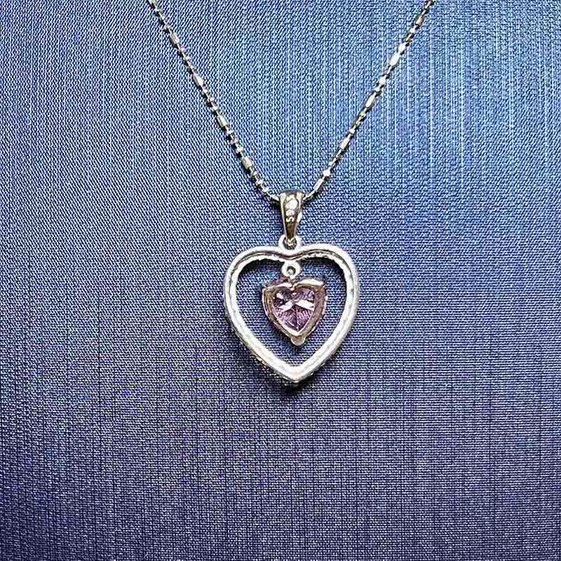 Silver Heart Necklace with Purple Stone
