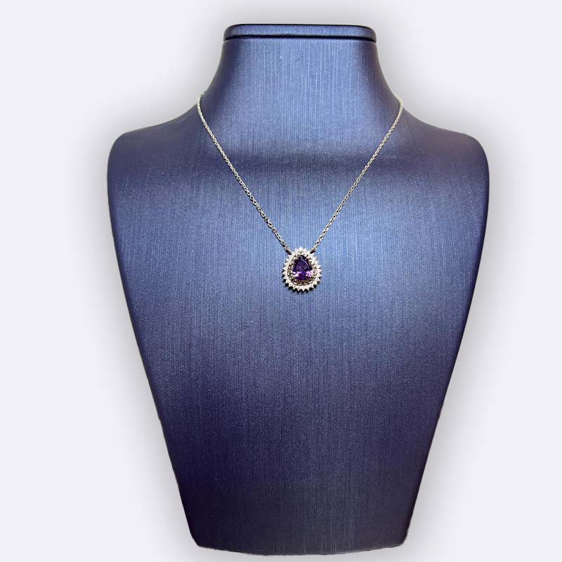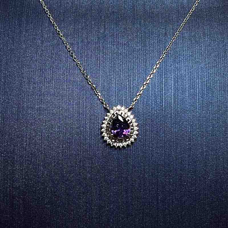 Silver Teardrop Purple Stone Necklace