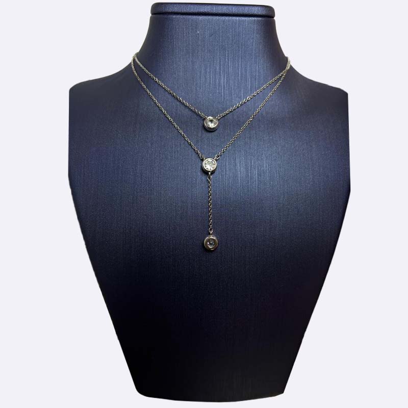 قلادة نسائية من فضة أصلية بتصميم طبقات أنثوي وعصري، باللون الفضي مع حجارة شفافة ناعمة تعطي لمسة لمعان وكيوت. قطعة خفيفة وتبرز الرقبة بأسلوب أنيق، مناسبة للاستخدام اليومي وتكمّل الإطلالة الشبابية بسهولة.