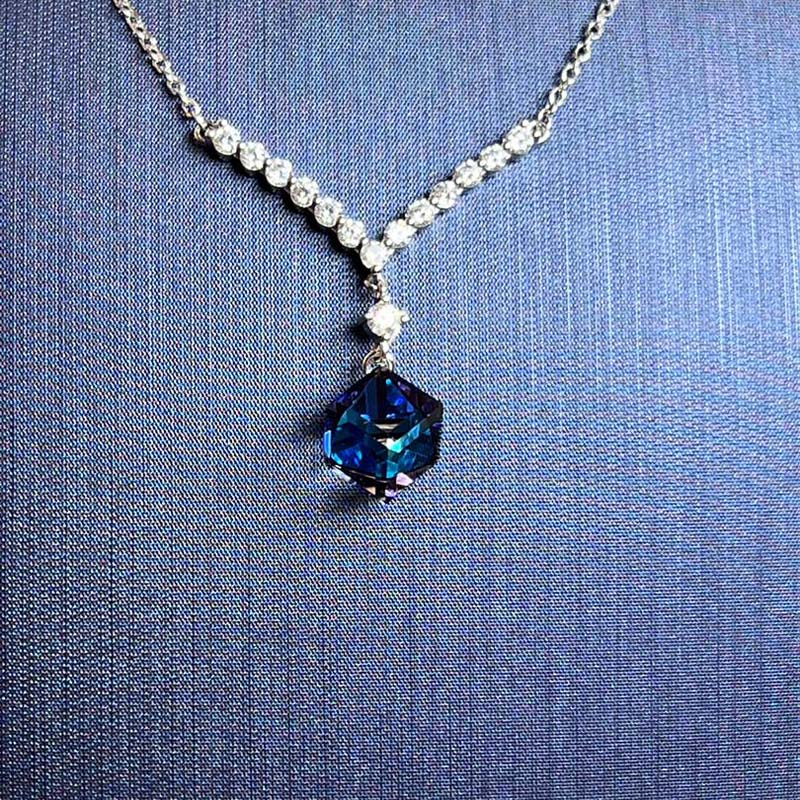تألقي بسحر الياقوت مع هذا العقد الكريستالي الأنيق. تصميم فريد يضفي لمسة من الفخامة على إطلالتك.