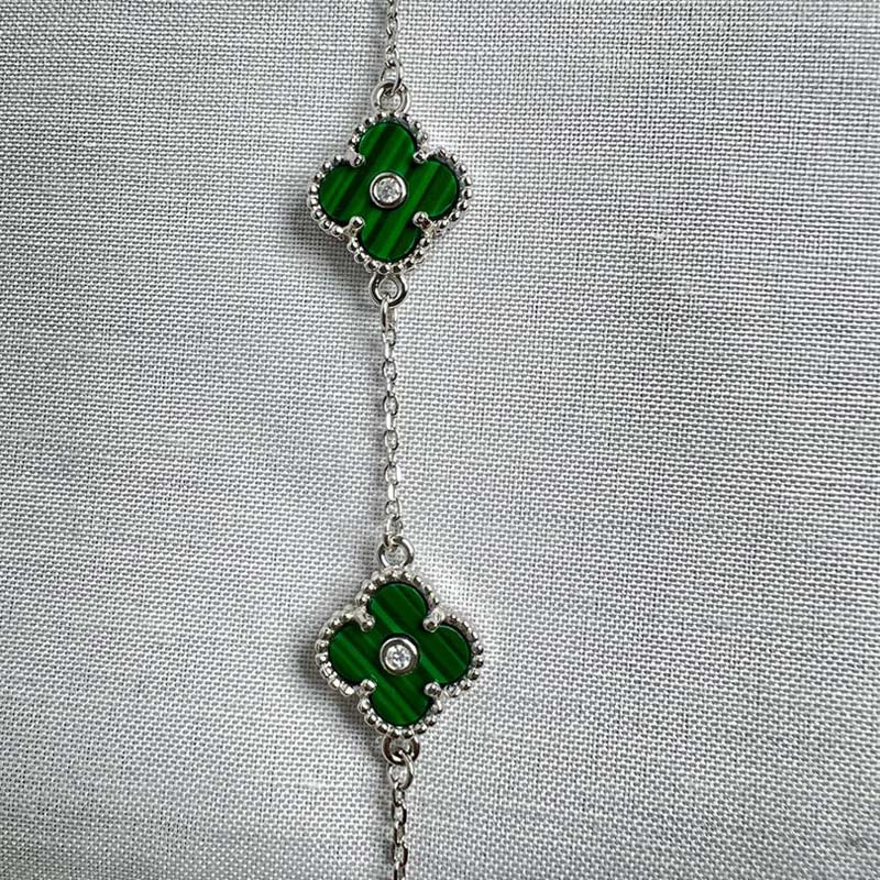 أضيفي لمسة من الأناقة إلى مظهرك مع هذا السوار الرائع. يتميز بتصميم البرسيم الزمردي الساحر الذي يضفي لمسة من الجمال والجاذبية,تأتي بمقاس صغير