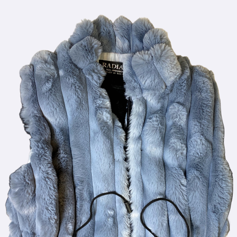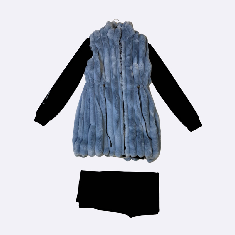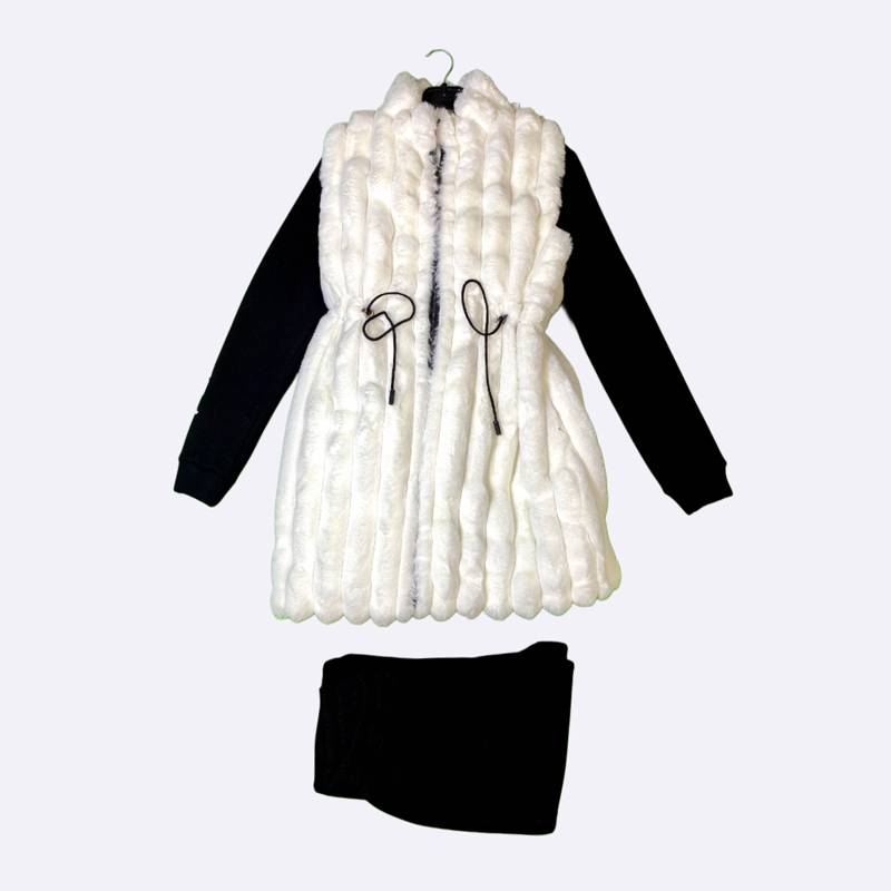 طقم بيجاما شتوي دافئ ومريح مكون من فيست فرو صناعي بسحاب ورباط خصر، وتوب بأكمام طويلة، وبنطلون فليس