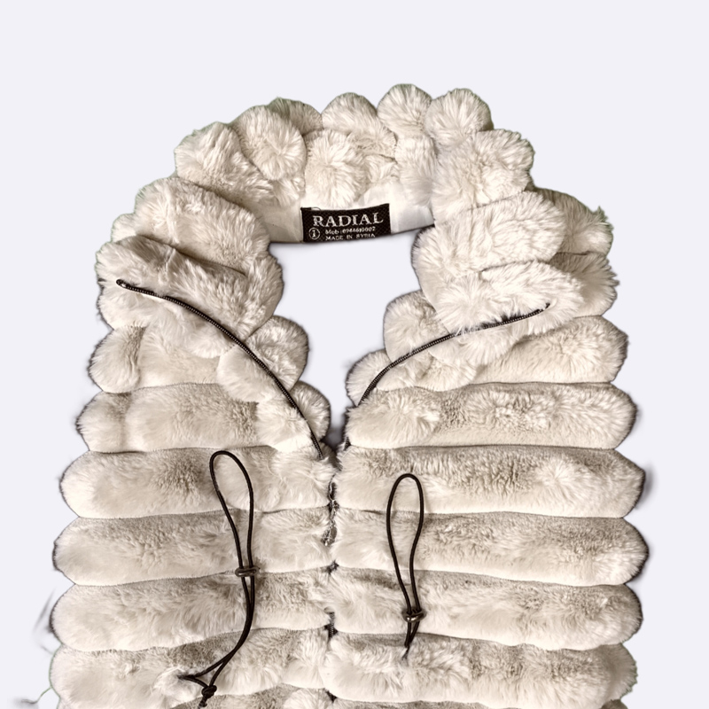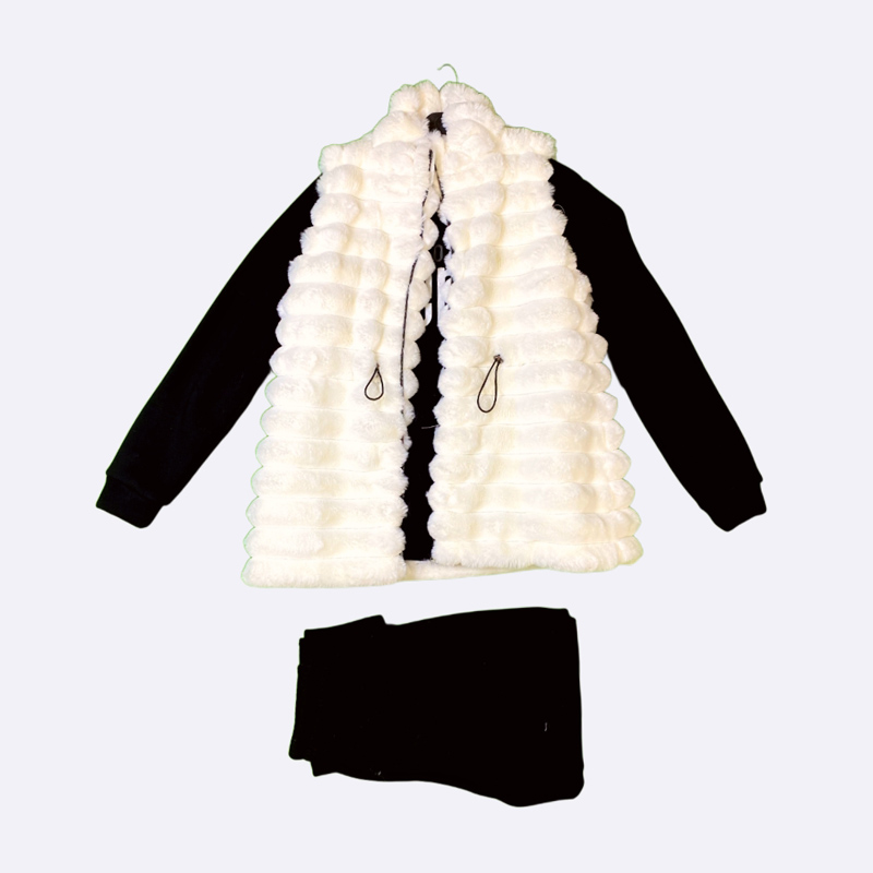 طقم شتوي دافئ ومريح مكون من فيست طويل من الفرو الصناعي بسحاب، سويت شيرت بأكمام طويلة، وبنطلون فليس.