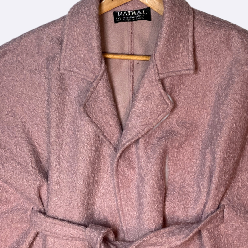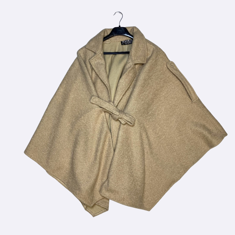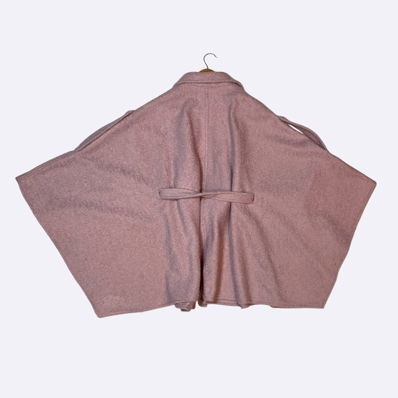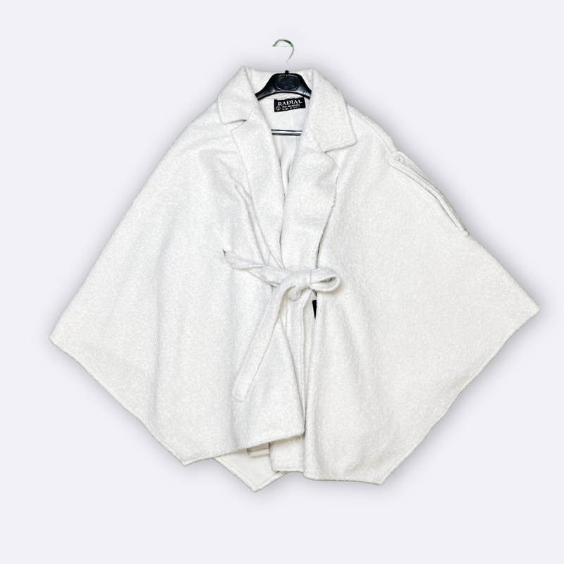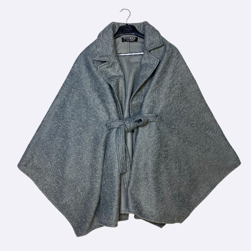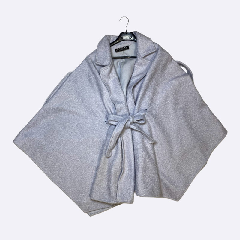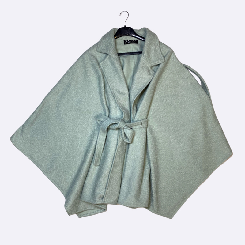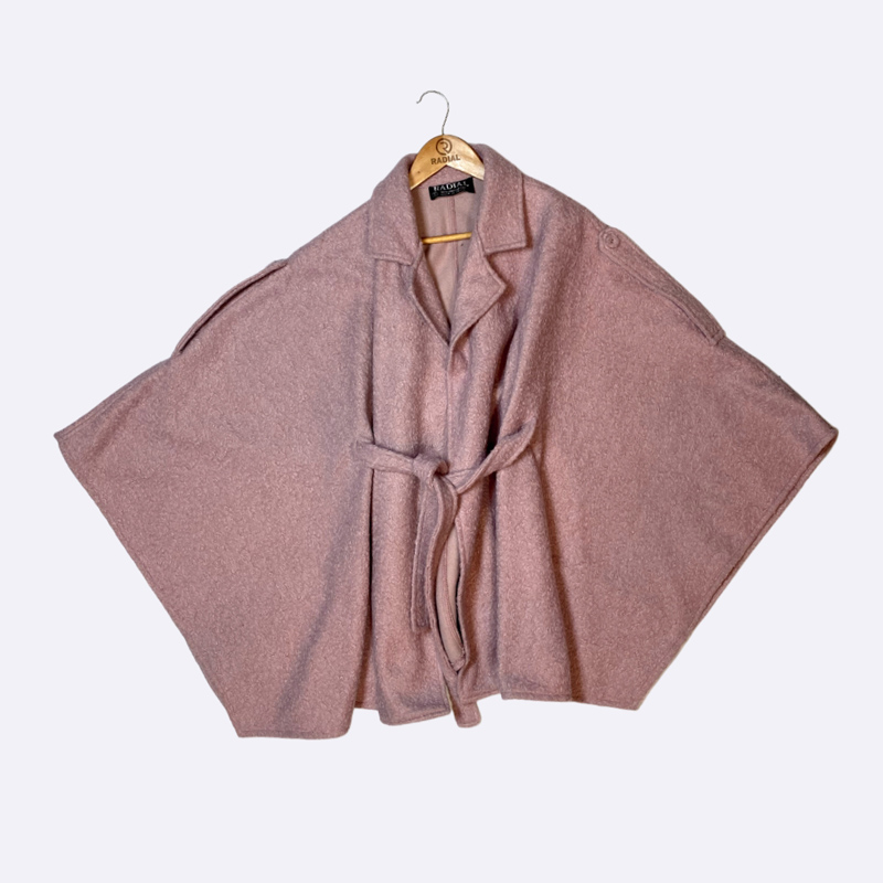 كاب واسع بأكمام عريضة من خامة الجوخ الدافئة، يتميز بياقة رسمية وحزام خصر للربط والإغلاق.
