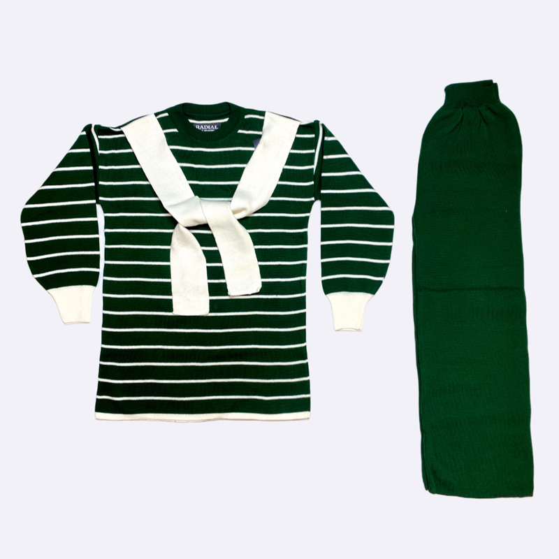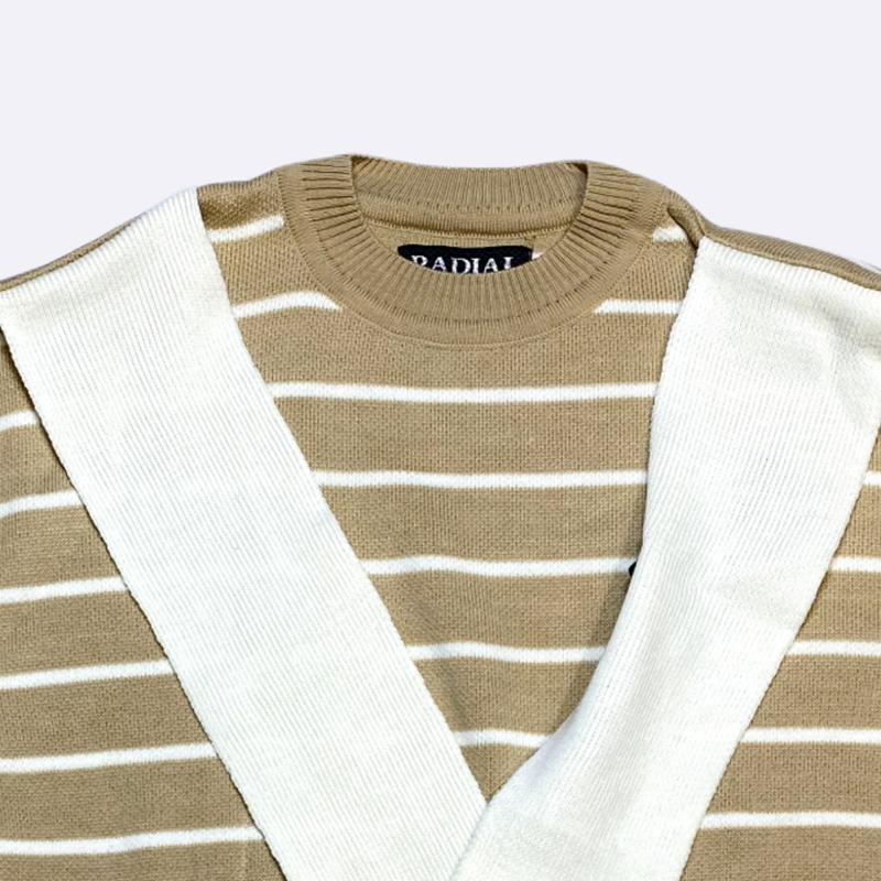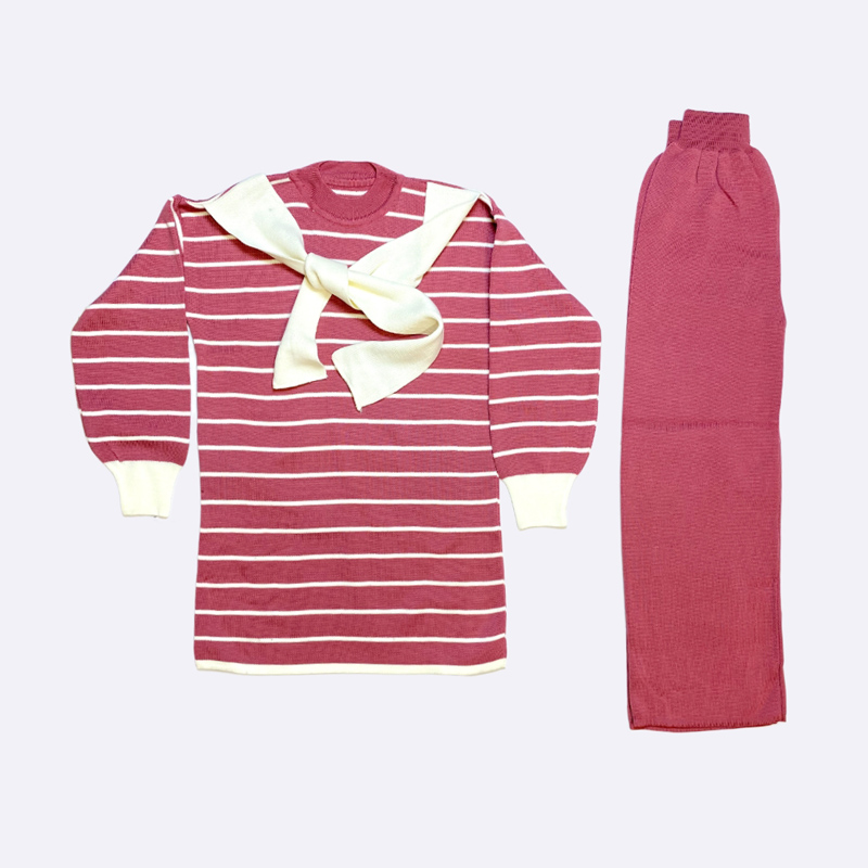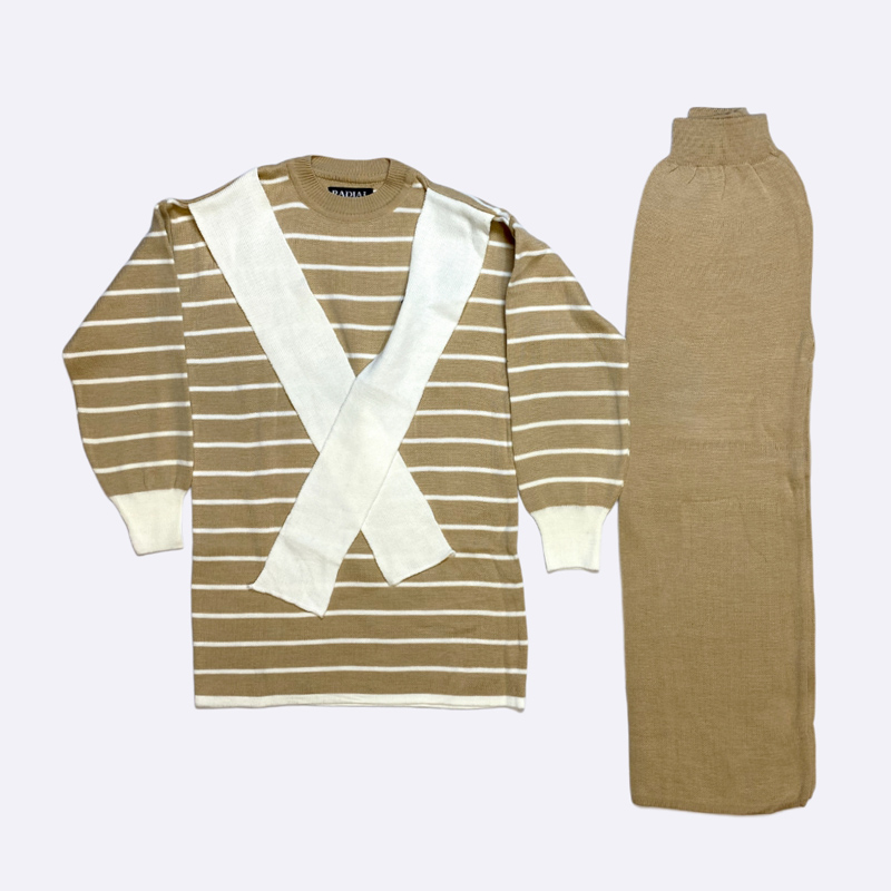 Striped Knit Set with Decorative Cross Collar