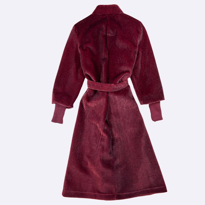 تألقي بأناقة مع هذا المعطف الميدي الفاخر المصنوع من القطيفة الناعمة. يتميز بتصميم أنيق مع حزام لتحديد الخصر وأساور مضلعة لإطلالة عصرية ومريحة. مثالي لإضافة لمسة من الدفء والأناقة إلى خزانة ملابسك الشتوية.