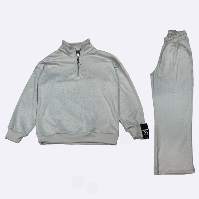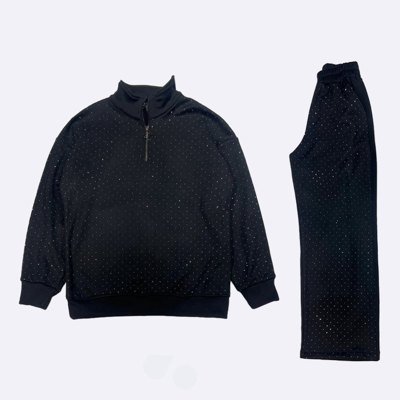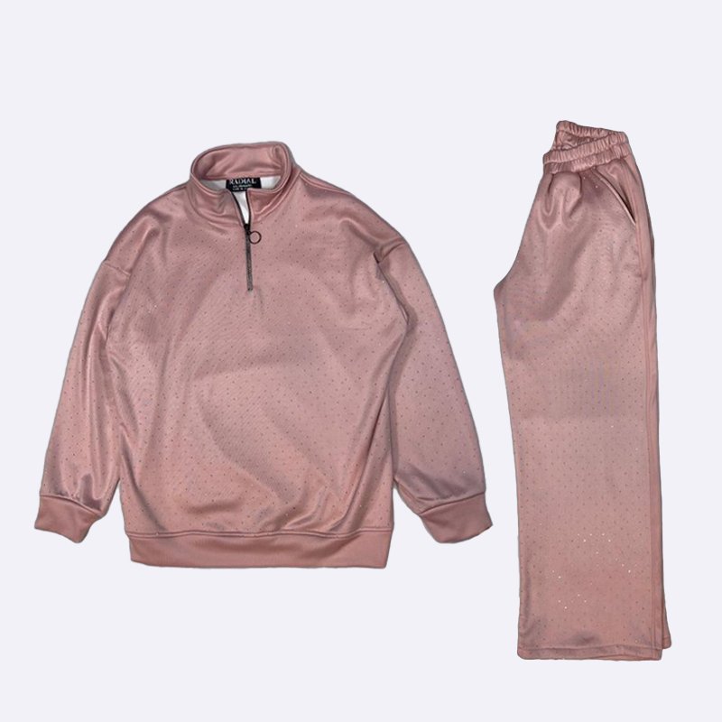 استمتعي بإطلالة مريحة وعصرية مع هذا الطقم اللامع. يتميز بتصميم مريح وأنيق، مثالي للاسترخاء أو لقضاء وقت ممتع مع الأصدقاء