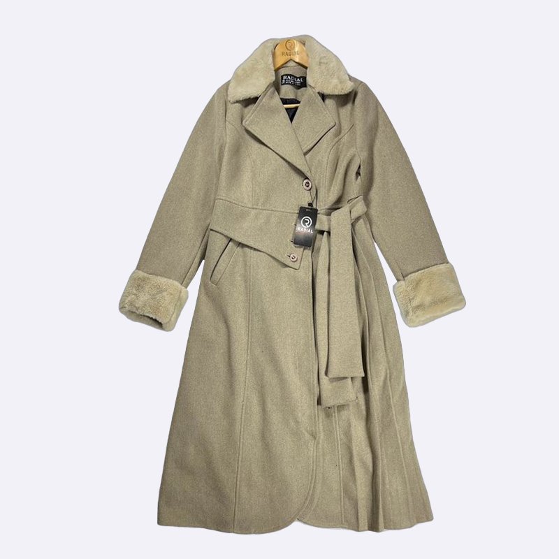 استقبلي الشتاء بأناقة مع هذا المعطف الماكسي الفاخر. تصميم أنيق بحزام وحواف من الفرو يضفي لمسة من الدفء والجمال على إطلالتك.