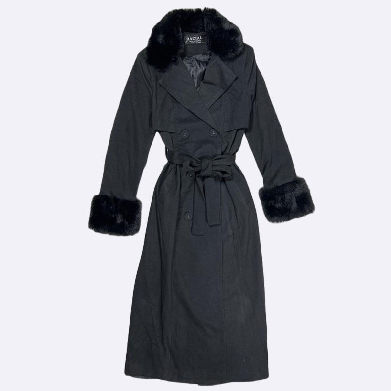 تألقي بأناقة هذا الشتاء مع معطف الترنش الأنيق بياقة وأكمام من الفرو الصناعي الفاخر. تصميم عصري يضفي لمسة من الدفء والجاذبية على إطلالتك.