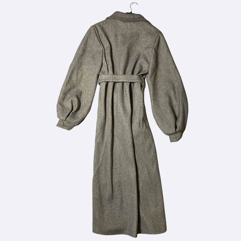 Women's Long Wool Blend Coat with Puff Sleeves