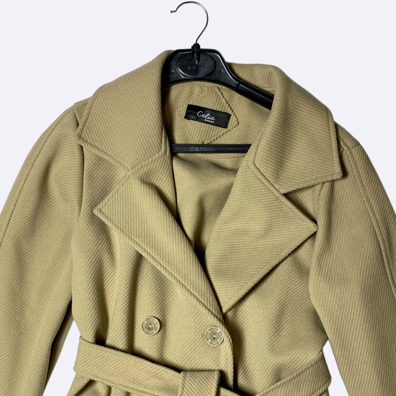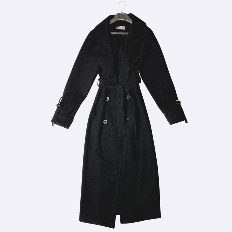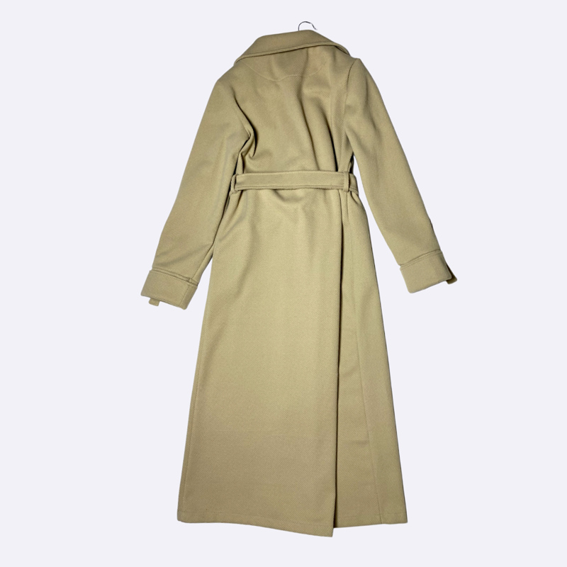 معطف شتوي نسائي طويل بتصميم مزدوج الصدر وأزرار، يتميز بياقة كلاسيكية عريضة. مزود بحزام عريض للخصر وأشرطة قابلة للتعديل على الأكمام. يوفر إطلالة راقية ودفئًا ممتازًا.