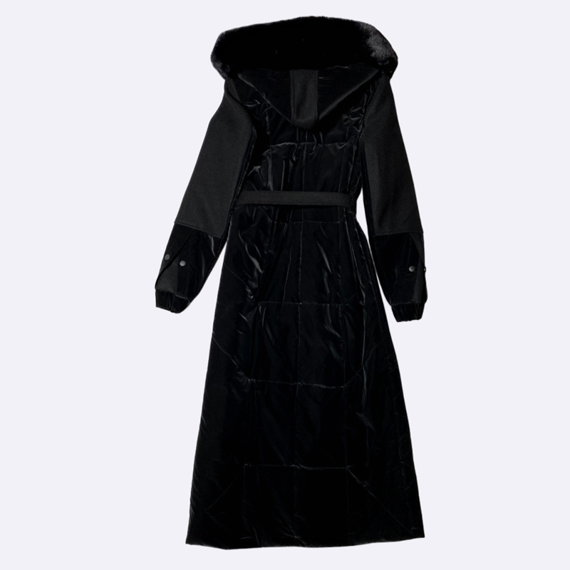 Women's Long Quilted Hooded Coat with Fur Trim