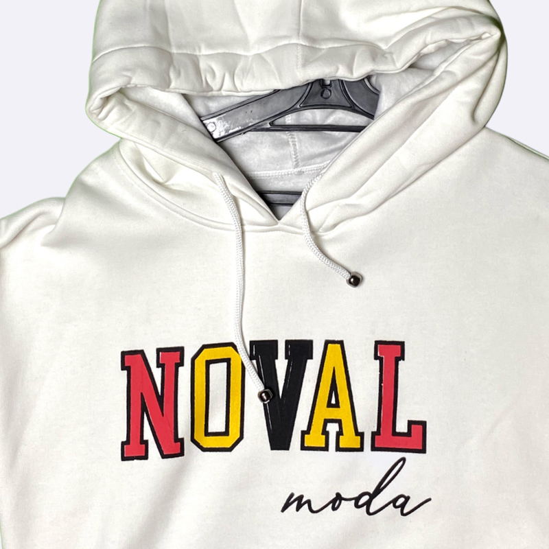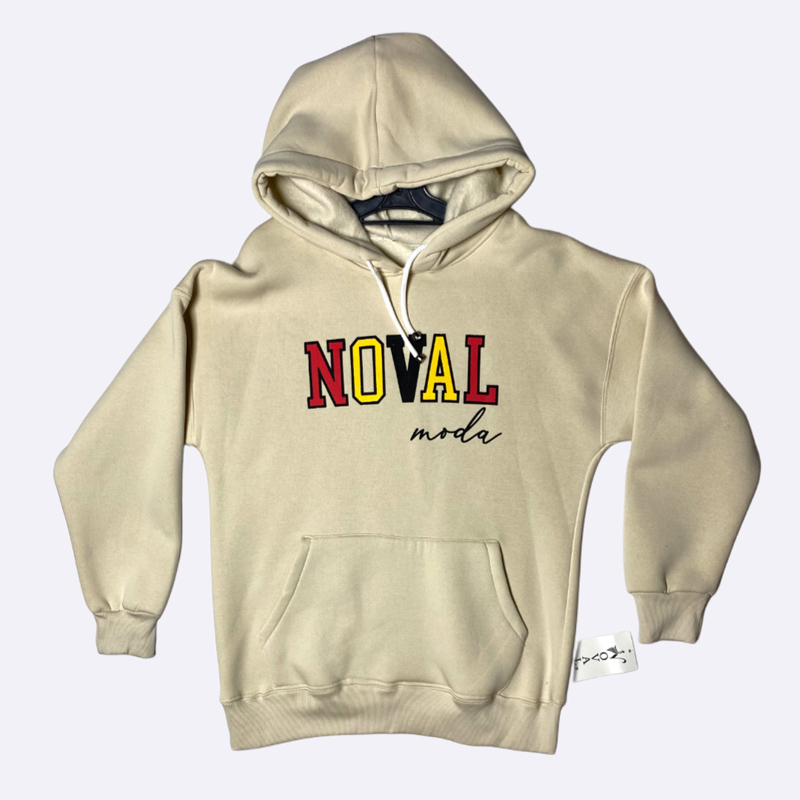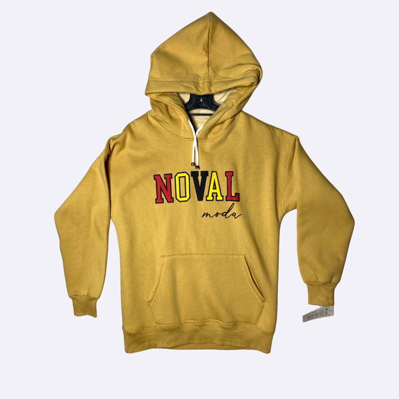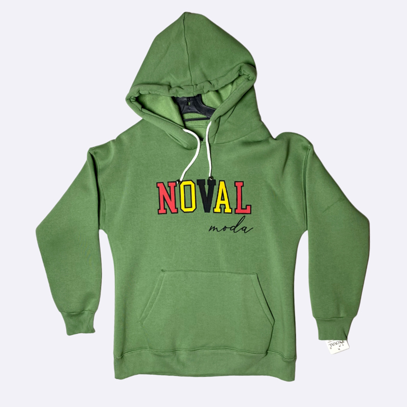 كنزة صوفية (هودي) بغطاء رأس ورباط قابل للتعديل. مزودة بجيب أمامي (جيب كانغارو) وطباعة ملونة على الصدر. قماش مريح ومناسب للارتداء الكاجوال.