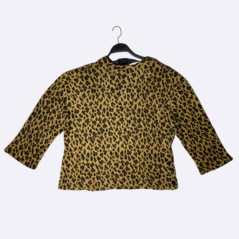 توب زارا المحبوك بنقشة الليوبارد الجذّابة بتصميم مريح وملمس ناعم، يمنح إطلالة عصرية ولافتة. يتميز بقَصّة واسعة وأكمام متوسطة الطول، مما يجعله خياراً مثالياً للإطلالات اليومية والستايلات الجريئة.