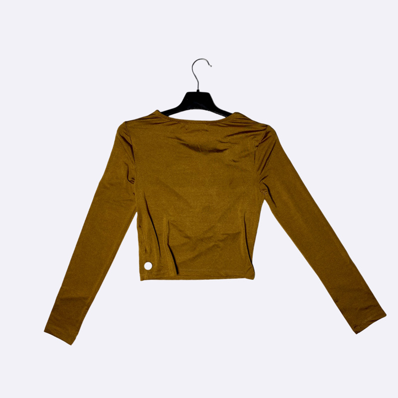 توب سينساي من قماش الساتان الناعم واللامع، بتصميم قصير وأكمام طويلة يمنح إطلالة أنثوية راقية. يتميز بعقدة أمامية تضيف لمسة فخامة وأناقة، مما يجعله مناسباً للوك المسائي والمناسبات البسيطة.