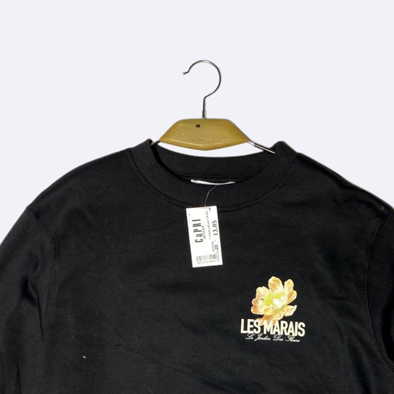 سويتشيرت نسائي بياقة دائرية كلاسيكية وأكمام طويلة، يتميز بطباعة رسومية صغيرة في منطقة الصدر.