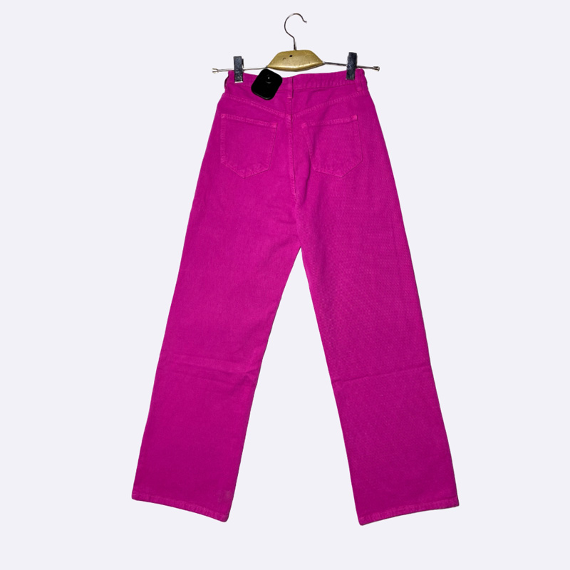 بنطلون نسائي بتصميم عصري ذو خصر عالٍ، يتميز بأرجل واسعة ومستقيمة، بلمسة نهائية مفعمة بالحيوية والجرأة.
