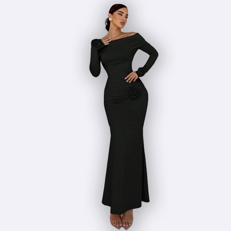 Elegant Off-Shoulder Flower Detail Maxi Dress