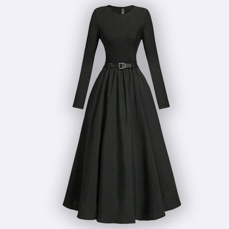 تألقي بإطلالة أنيقة ومحتشمة مع هذا الفستان الماكسي الأسود. يتميز بتصميم كلاسيكي وحزام أنيق يحدد الخصر، مما يجعله مثالياً للمناسبات الخاصة أو اليومية.