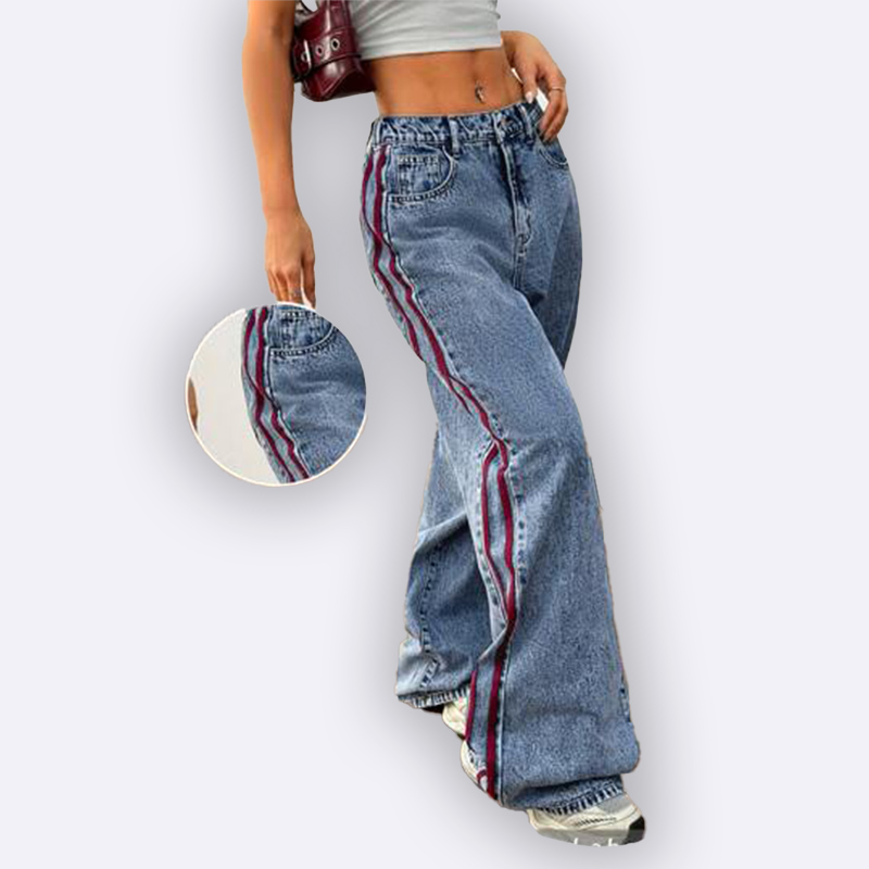 Retro Stripe Wide Leg Jeans