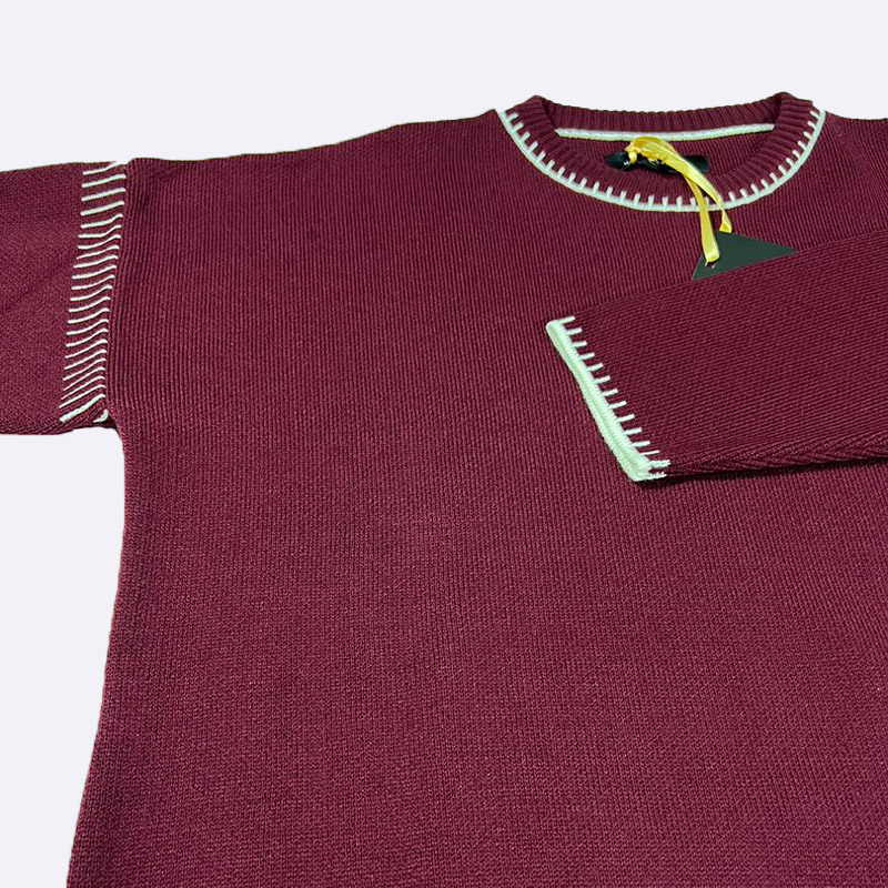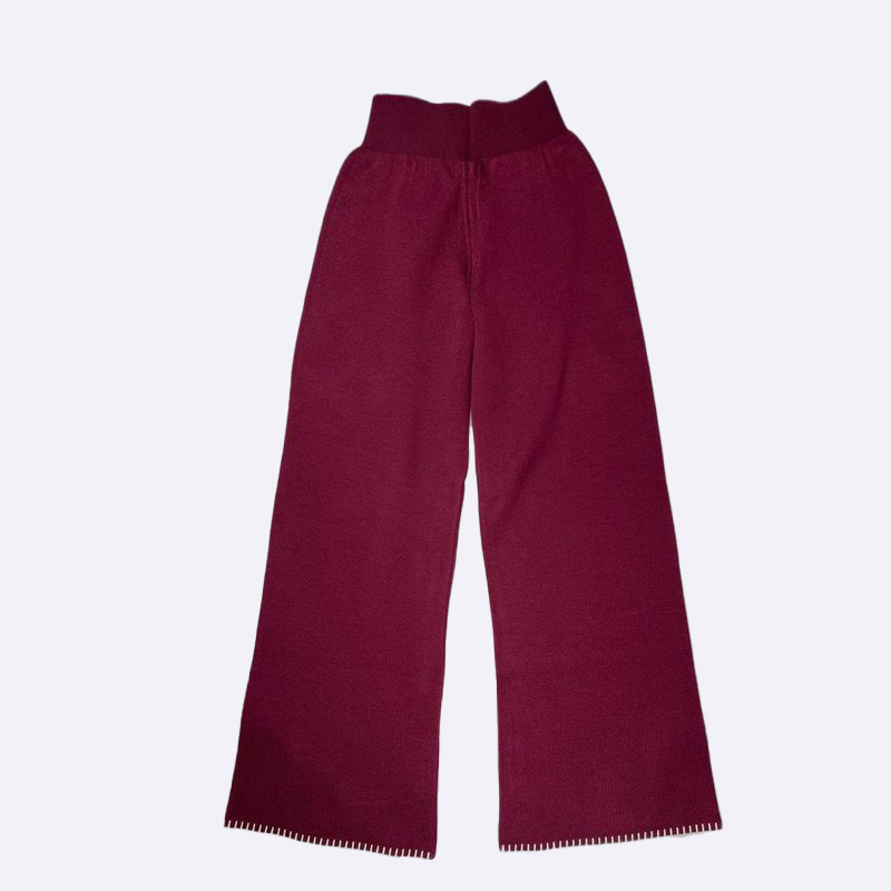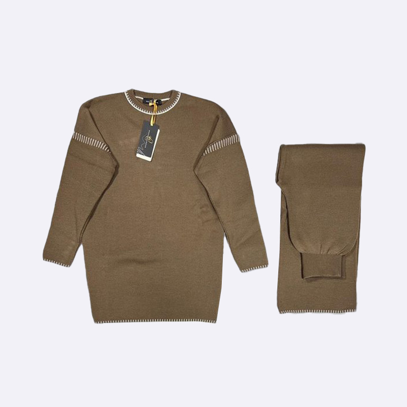 طقم بجامة قطعتين من التريكو الناعم، يتميز بتفاصيل خياطة بيضاء على الرقبة والأطراف لإطلالة دافئة وأنيقة.