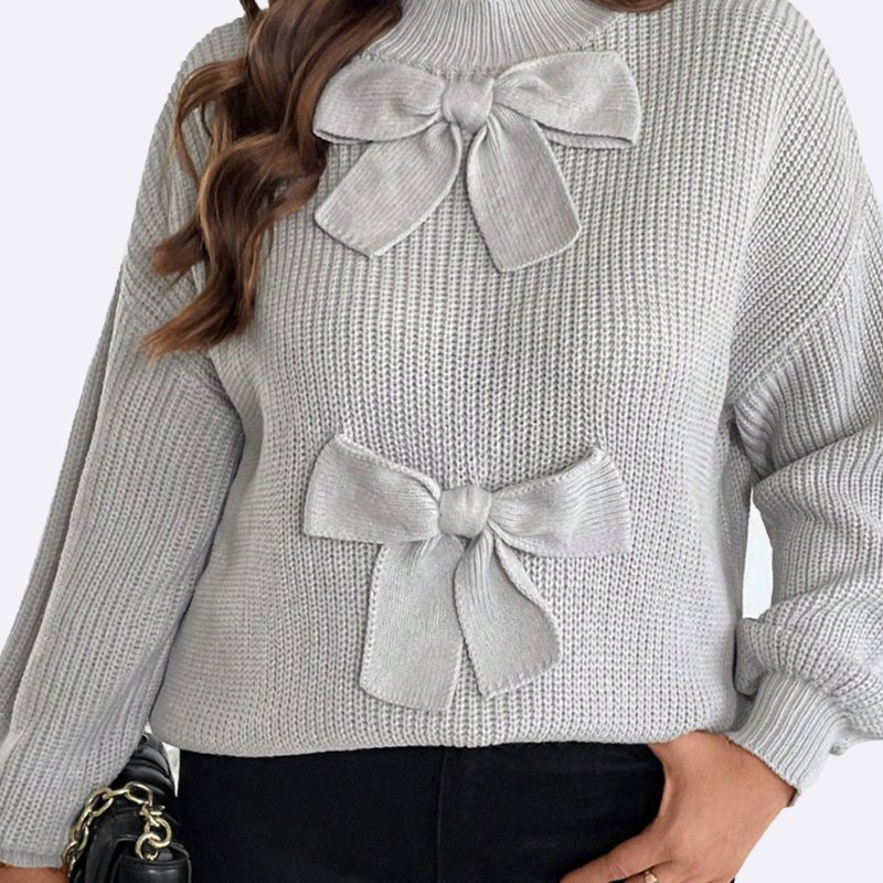 تألقي بكنزة محبوكة فريدة من نوعها بتصميم فيونكات أنيقة. مصنوعة من أجود الخامات لتمنحكِ الدفء والراحة في كل الأوقات. أضيفي لمسة من الجمال إلى خزانتكِ.