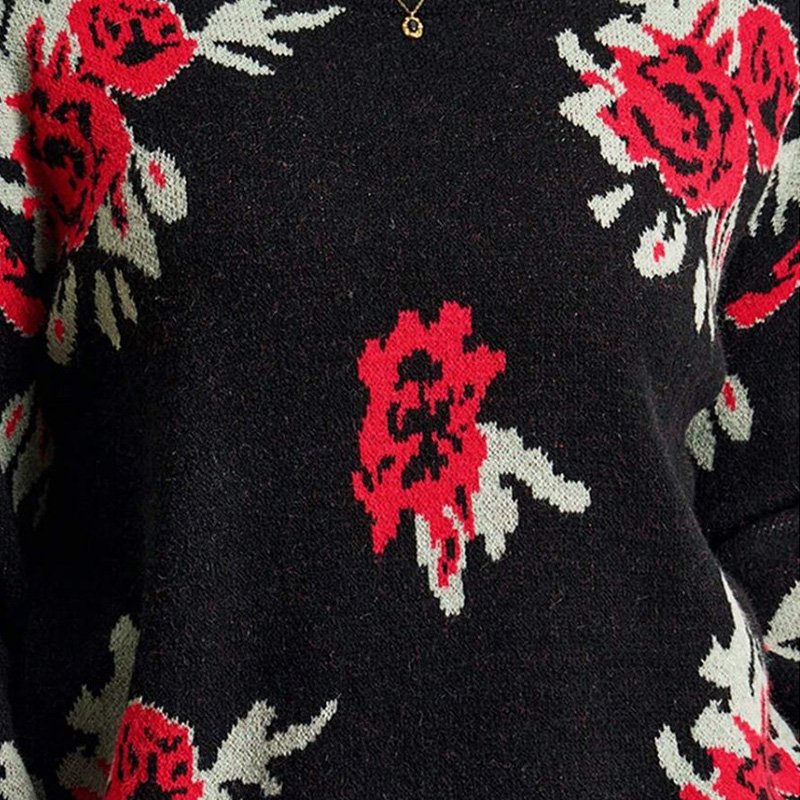 انعمي بالدفء والأناقة مع هذه الكنزة التريكو المزينة بالورود. تصميم عصري ومريح يضفي لمسة جمالية على إطلالتك.