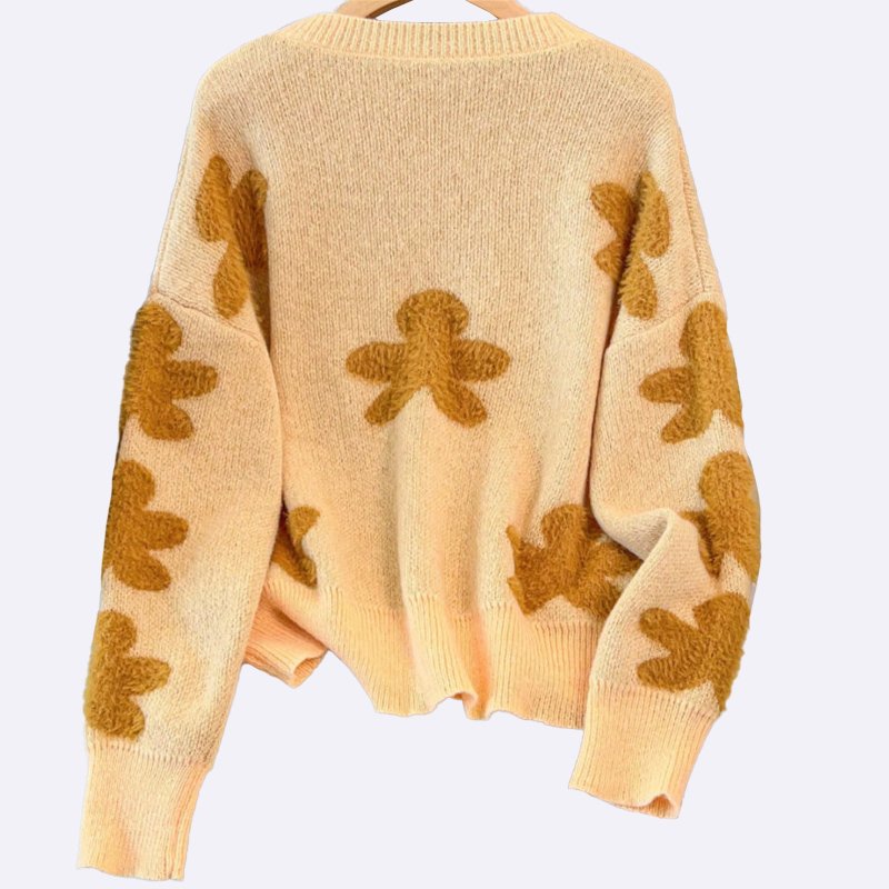 Floral Appliqué Knit Sweater