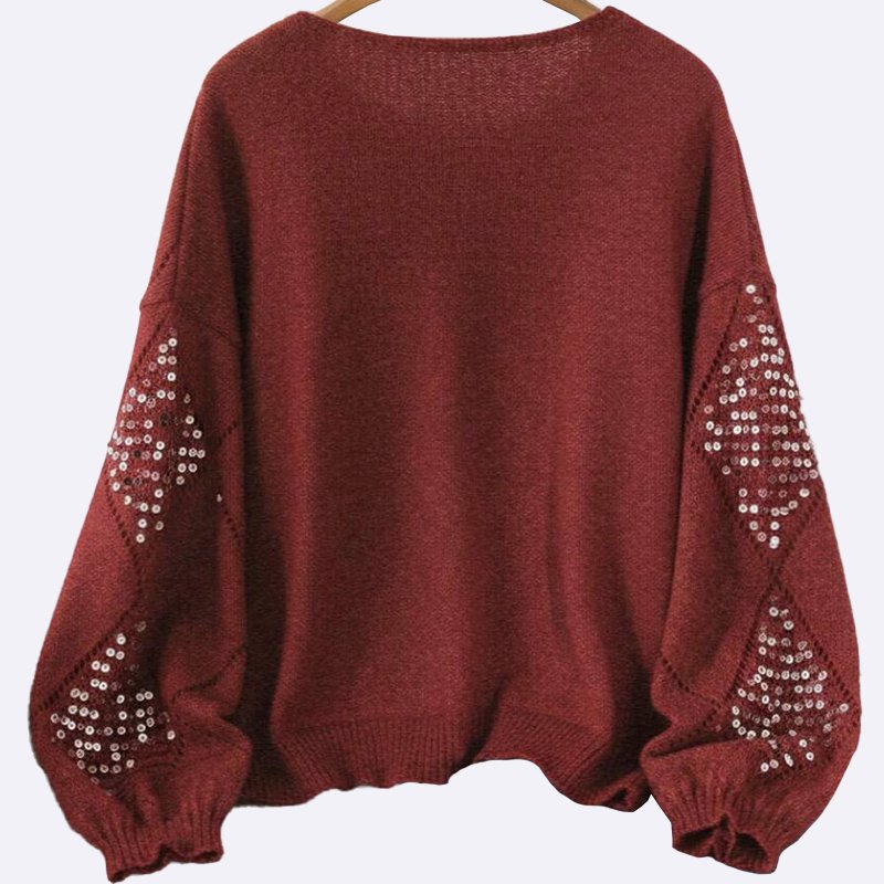 تألقي بكنزة التريكو الماسية المزينة بالترتر الأنيقة. تصميم عصري ومريح يضفي لمسة جذابة على إطلالتك.